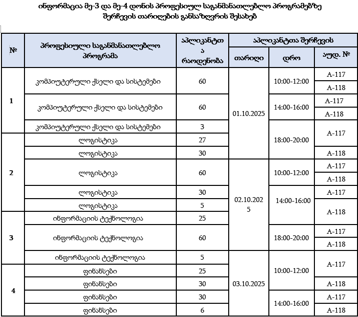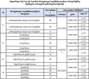 განისაზღვრა აკადემიის მე-3 და მე-4 დონის პროფესიულ საგანმანათლებლო პროგრამებზე რეგისტრირებულ აპლიკანტთა შერჩევის ვადები.
