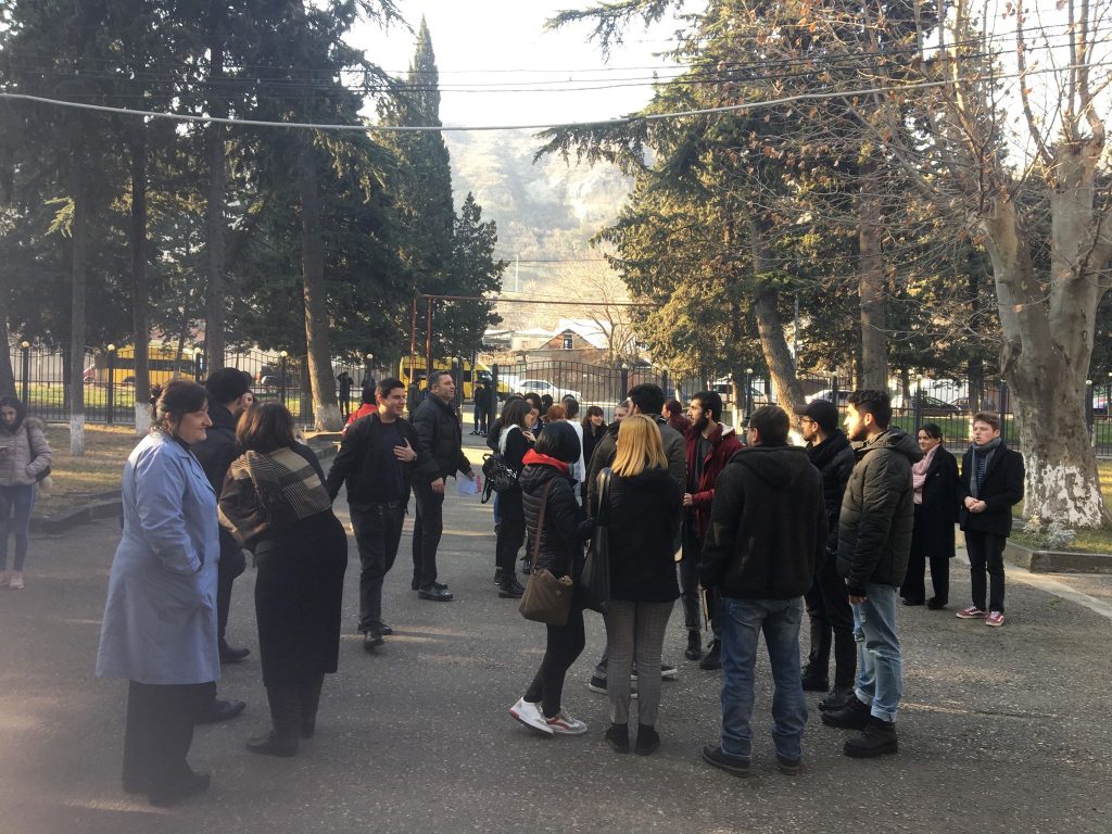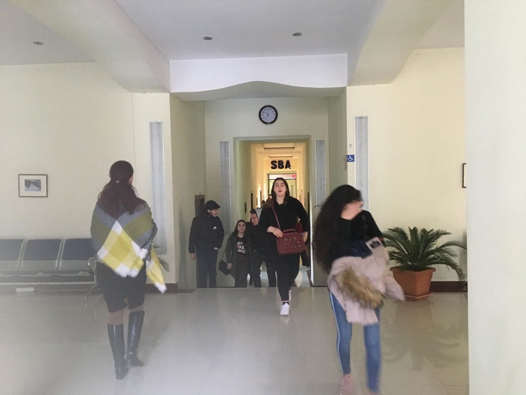 On February 6, 2019, the Immitation of Fire Safety Evacuation was conducted at Business Academy of Georgia- SBA. The evacuation imitation procedure was headed by the security service. Evacuation exit was opened for leaving the building.