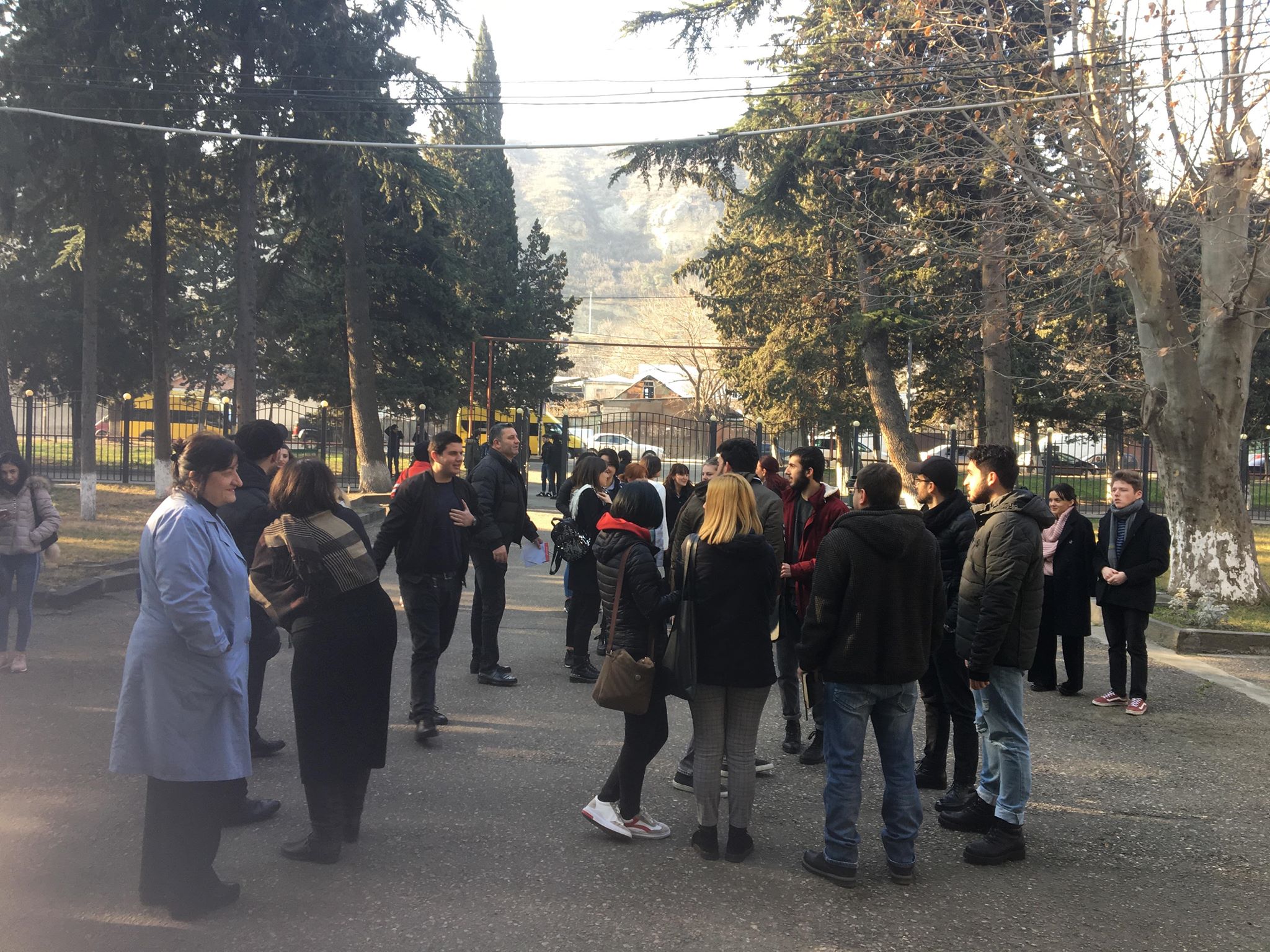In accordance with the instructions, after an alarming signal, in a few minutes after evacuation, everyone gathered in a safe area.